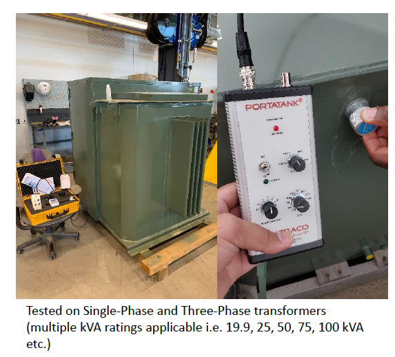 The oil level device uses ultrasound in order to detect the presence of a liquid. In order to do this, the main unit sends a strong electrical signal to the sensor, which then emits a high energy pulse of ultrasound into the transformer wall. The ultrasound is conducted through the solid walls of the transformer and then interacts with the contents. After the sensor stops, emitting ultrasound, it starts listening for the returning echos of the signal. If no liquid is present, the echos will not be returned. This process allows the device to detect the presence or absence of transformer oil where the sensor is placed.